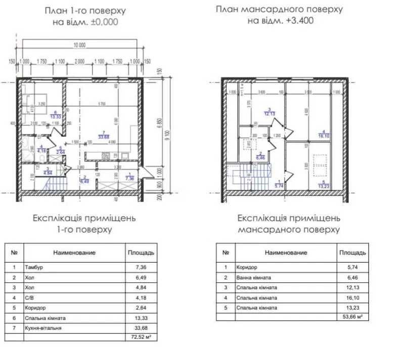 Площа - 125 м2, 2 поверхові, 4 кімнати, 2 санвузли, тех приміщення.
