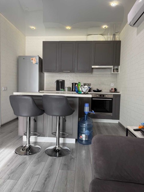 Поверх 5тий, загальна плоза 46м2, кухня студія з диваном та окрема спальня з двоспальним ліжком. Дві шафи, вбудована кухня, острів, є вся необхідна техніка (кодиціонери, бойлер, Смарт тевізор) та меблі.