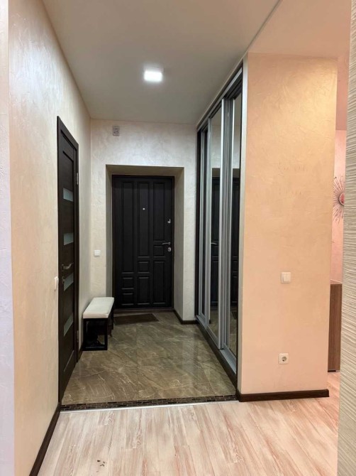 Будинок із червоної цегли, стіни 80см, або 2.5 цегли у товщину. Однокімнатна квартира перероблена у двушку студію, зручно розташований диван у передпокої, окрема спальня з двоспальним ліжком. Дві шафи, вбудована кухння, духова шафа, варочна поверхня, витяжка, СВЧ, кондицінер.