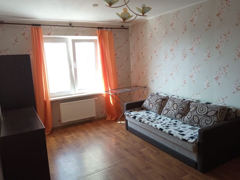 Функціональне планування: окрема кухня з меблями та плитою, простора кімната з диваном і місцями для зберігання, балкон. Квартира чиста та охайна, готова до заселення.