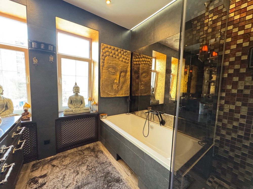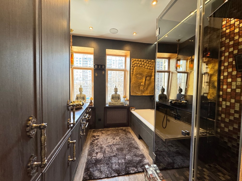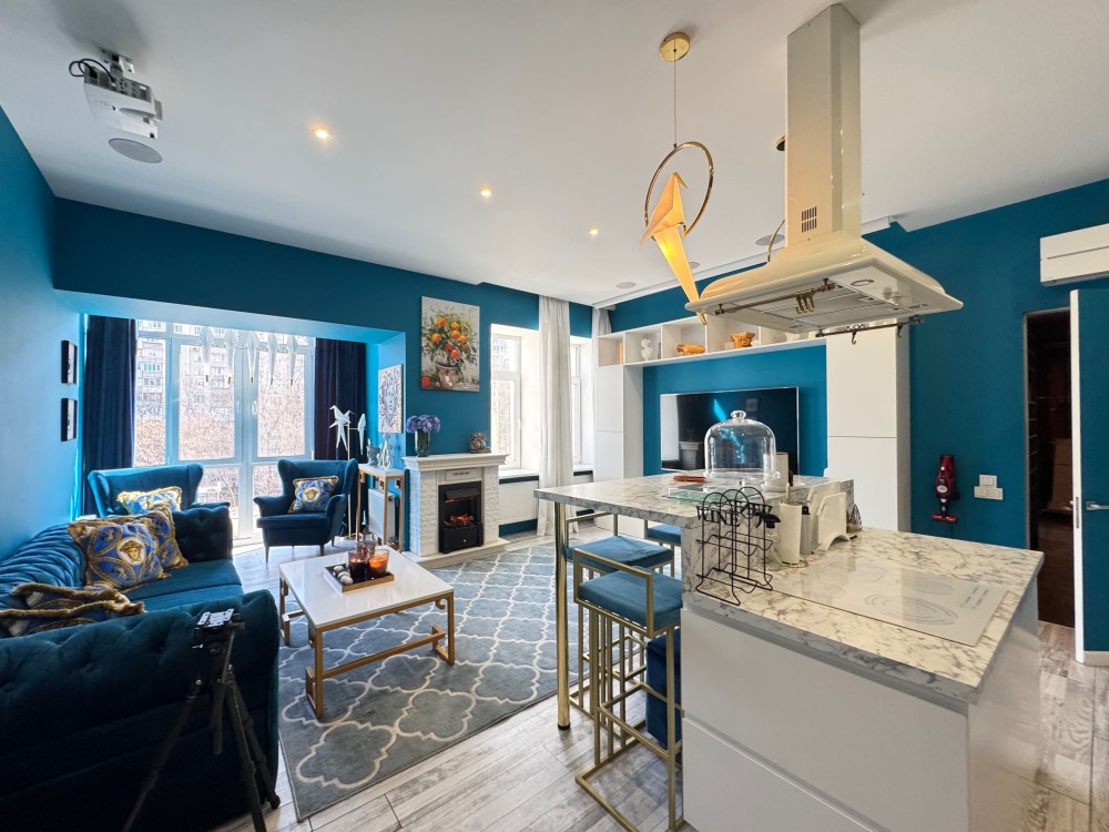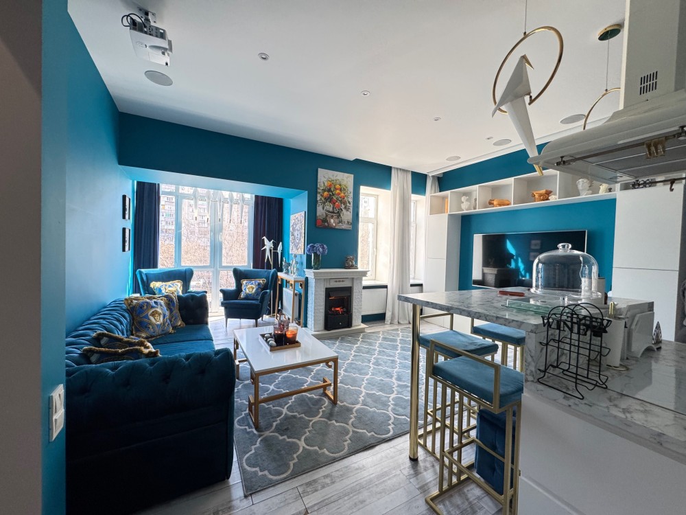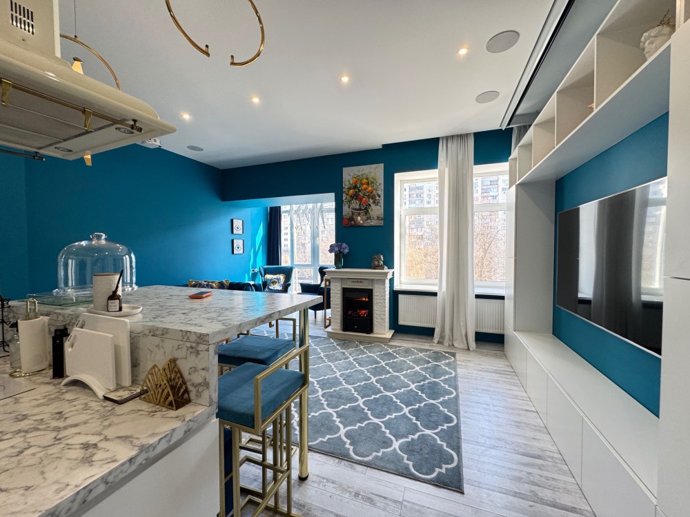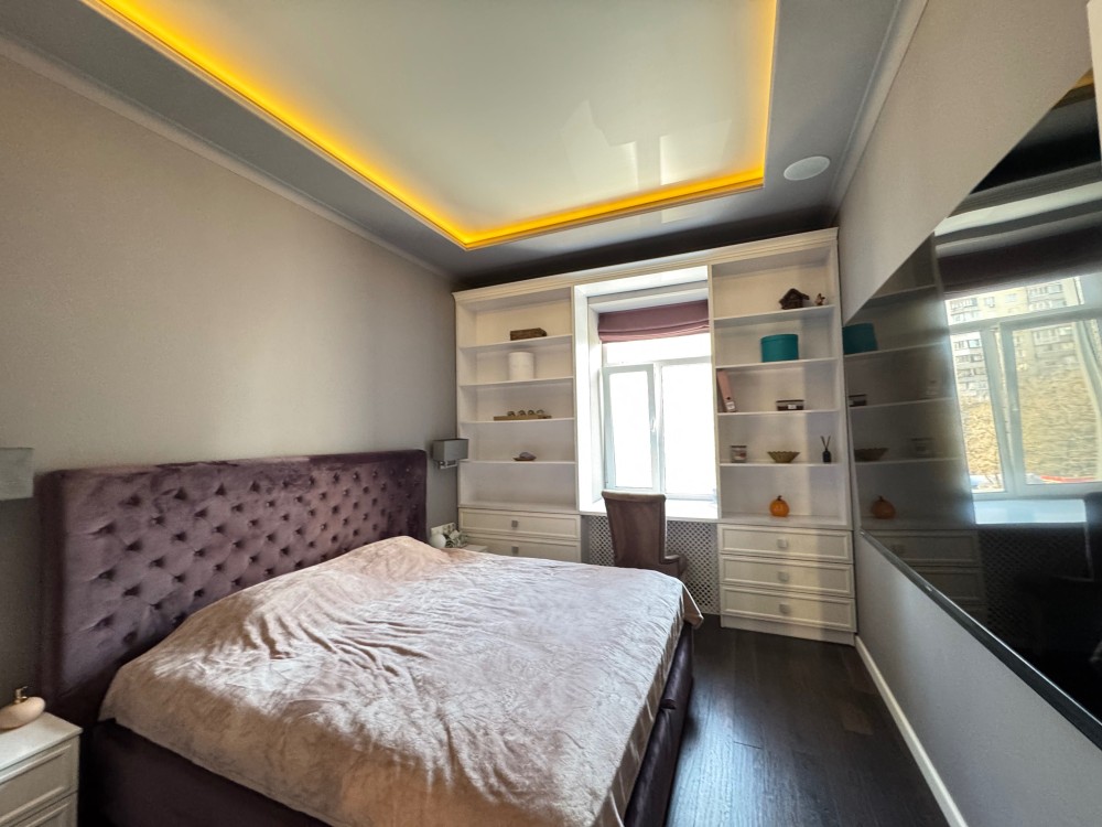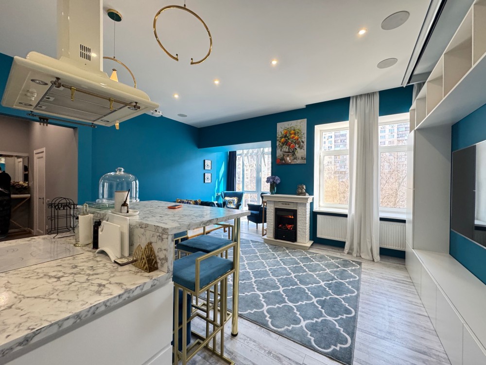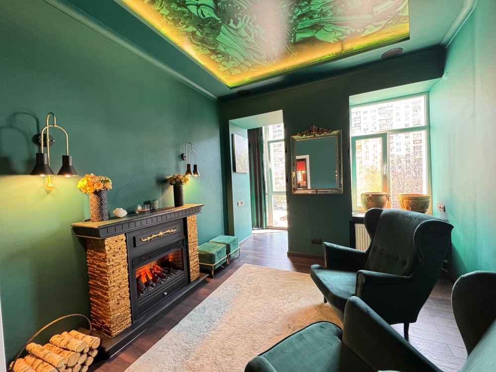 Стильна квартира з дизайнерським ремонтом , сучасне планування: кухня вітальня, спальня, кабінет, велика гардеробна , ванна кімната з вікном, душова кабіна, вбудовані шафа-купе, меблі, техніка, камін, Н=3.6м, дореволюційний цегляний теплий будинок , перекриття: залізобетон, закритий двір, парковка, розвинена інфраструктура: поруч магазини, дитячі садочки, школа, поліклініка, парк Голосіівський, метро Деміївська- 3 хвилини. До центру -10 хвилин.