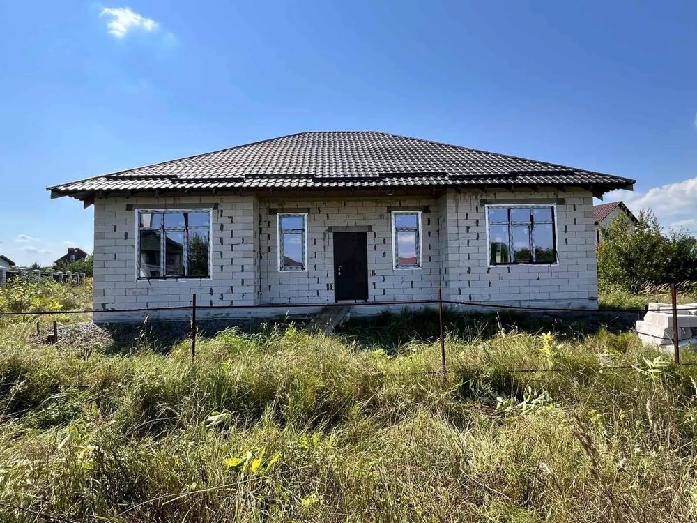 Горбовичі, Одноповерховий Будинок 145 м2, 18 соток в котеджному містечку Barberry Park, розташованому за 15 кілометрів від Києва! У будинки повністю зроблено розведення розеток і вимикачів (108 точок на будинок), зібрано ввідний електрощит, заведено оптоволоконний кабель місцевого провайдера, за проектом передбачалася водяна тепла підлога в кухні-вітальні, передпокої та ванної, є своя свердловина 52 метри, три переливні ями, дві з них глибокі, фундамент будинку: подушка із щебеню товщиною 1,5 м, монолітна плита на подушці, дах з корейської металочерепиці, вікна-двокамерні склопакети Rehau, підземний кабель електроенергії 10 кВт.