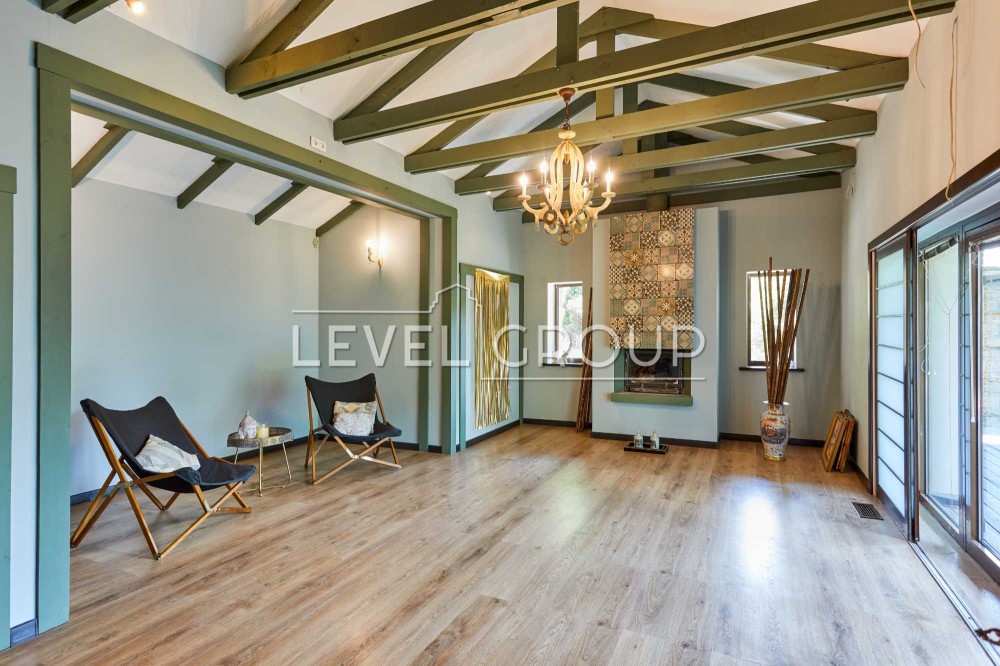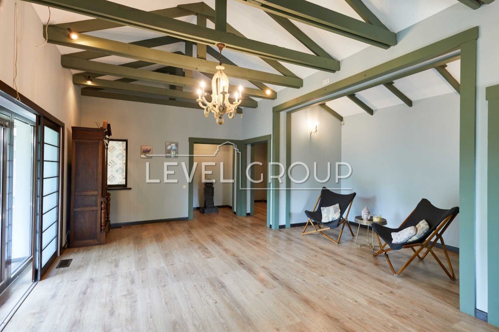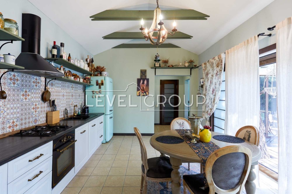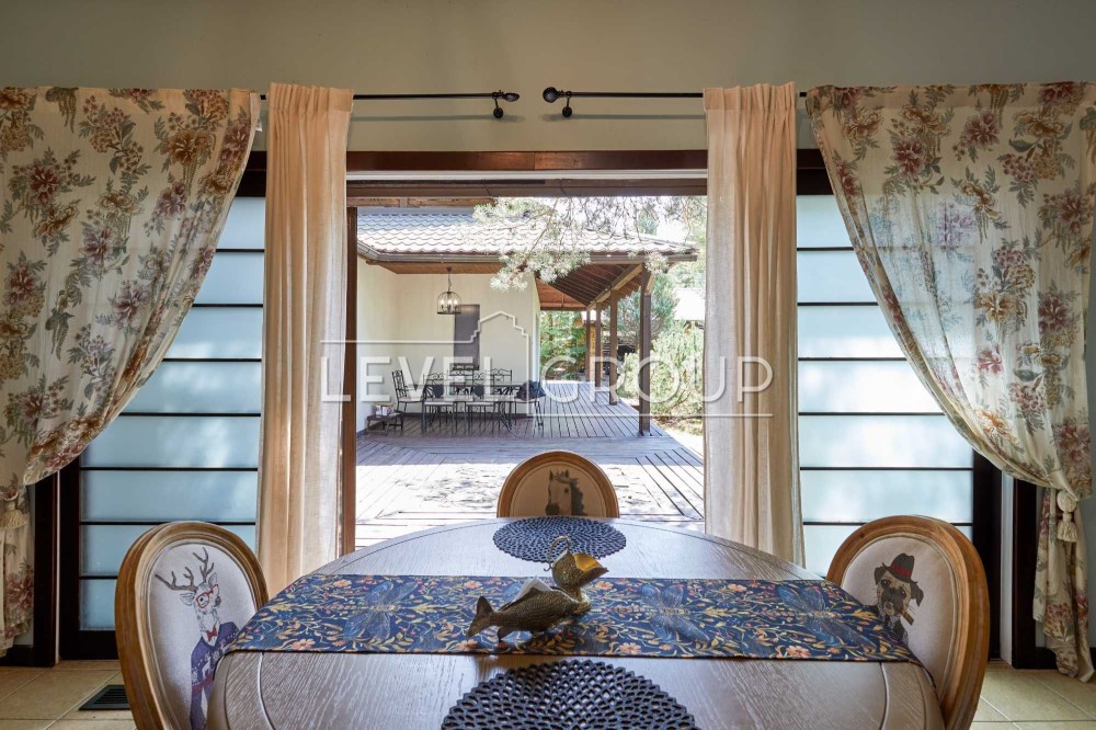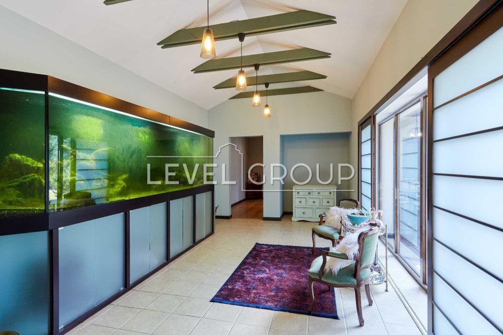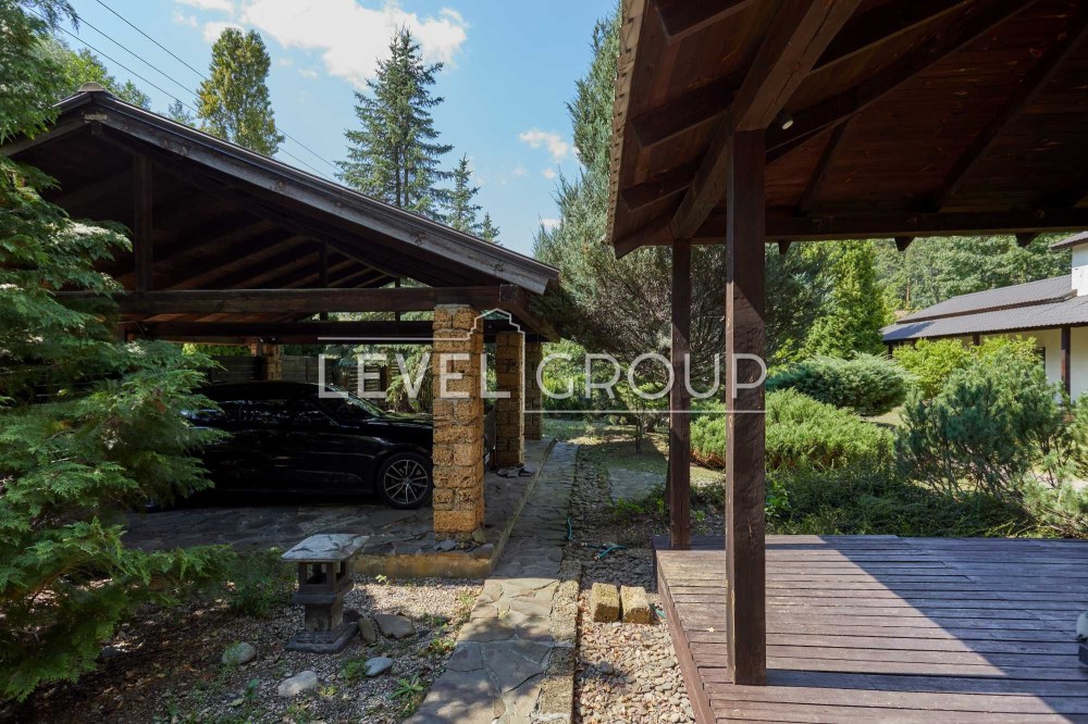 вітальня з каміном, кухня - студія, сауна, чотири санвузли, доглянута ділянка ділянка 12,0 соток з японським садом, ставком і купеллю, парковка на дві машини з навісом, Американська система опалення. Будинок повністю мебльований, оснащений всією необхідною технікою. Торг!