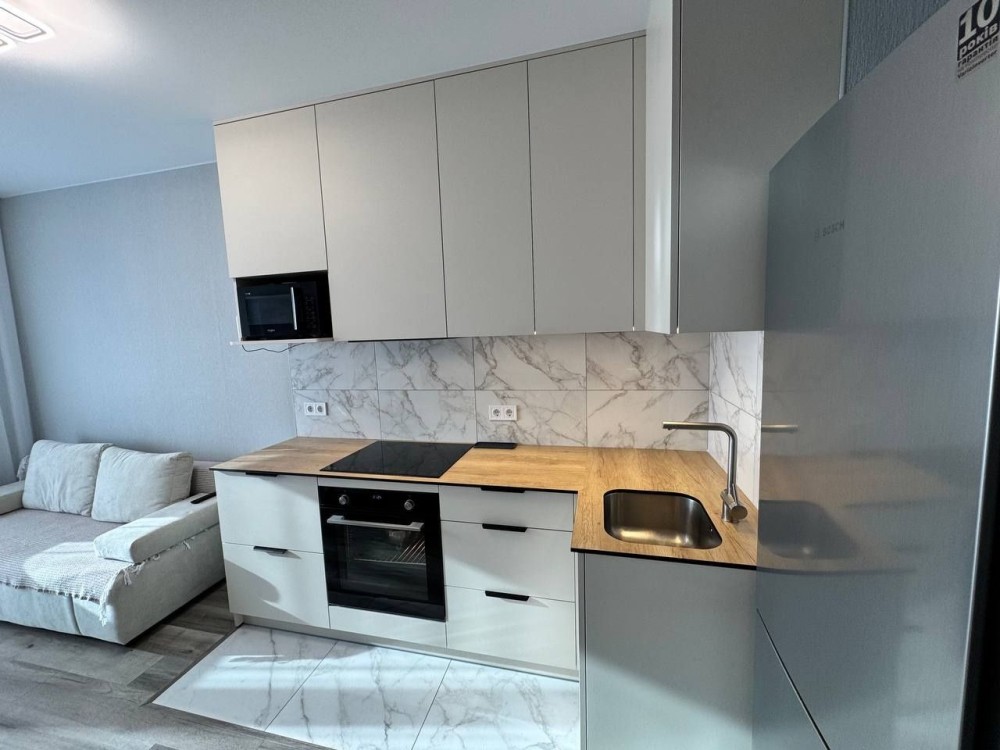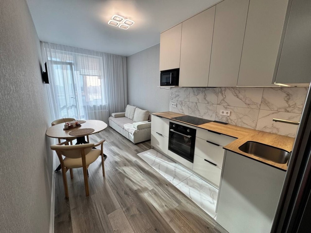 Продаж 1-к квартири вул. Ростиславська 5б. Світла та сучасна квартира з новим ремонтом у світлих тонах. Студійне планування з продуманим зонуванням. У квартирі — двоспальне ліжко та розкладний диван у кухонній зоні (як додаткове спальне місце). У передпокої — містка шафа-купе. Квартира повністю укомплектована технікою, все залишається: духовка, індукційна плита, холодильник, посудомийна машина, пральна машина, бойлер та кондиціонер. Зручна локація: поруч дві станції метро різних напрямків — Лук’янівська та Політехнічний інститут, також поруч проходить трамвай. 044 200 10 80