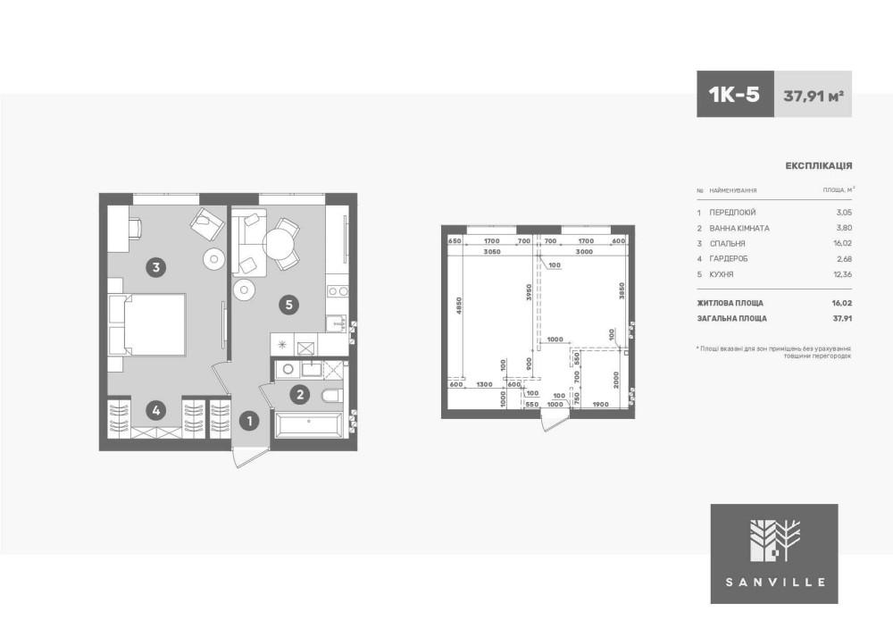 • Загальна площа 37.91 м2