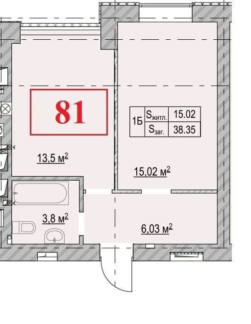 • Загальна площа 38 м2