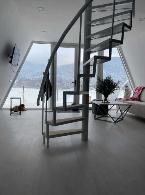 Площа садиб складає 46 м кв. та 48 м.кв. Житло споруджене 2021 року. Будинки А-подібного типу, покрівля - метало-черепиця, стіни - каркасно-щитові, електричне індивідуальне опалення, кондиціонер. На першому поверсі знаходиться просторий хол, відпочинкова зона з панорамними вікнами, кухня-ніша та санвузол, на другому - спальня з виглядом на гірські горизонти. Все залишається - меблі, телевізор, все що ви бачите на фото. Ділянка огороджена, на території облаштовано дитячий майданчик та терасу!