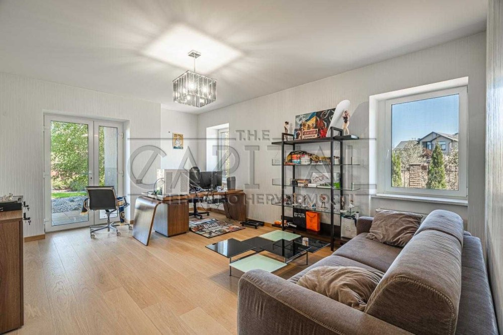 Пропонується просторий двоповерховий будинок із сучасною архітектурою та дизайнерським ремонтом. Будинок вирізняється високими стелями, панорамними вікнами, відкритим плануванням і використанням натуральних матеріалів.
