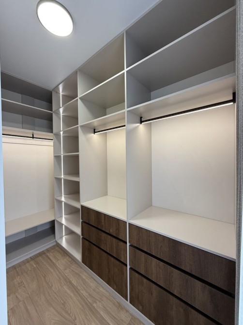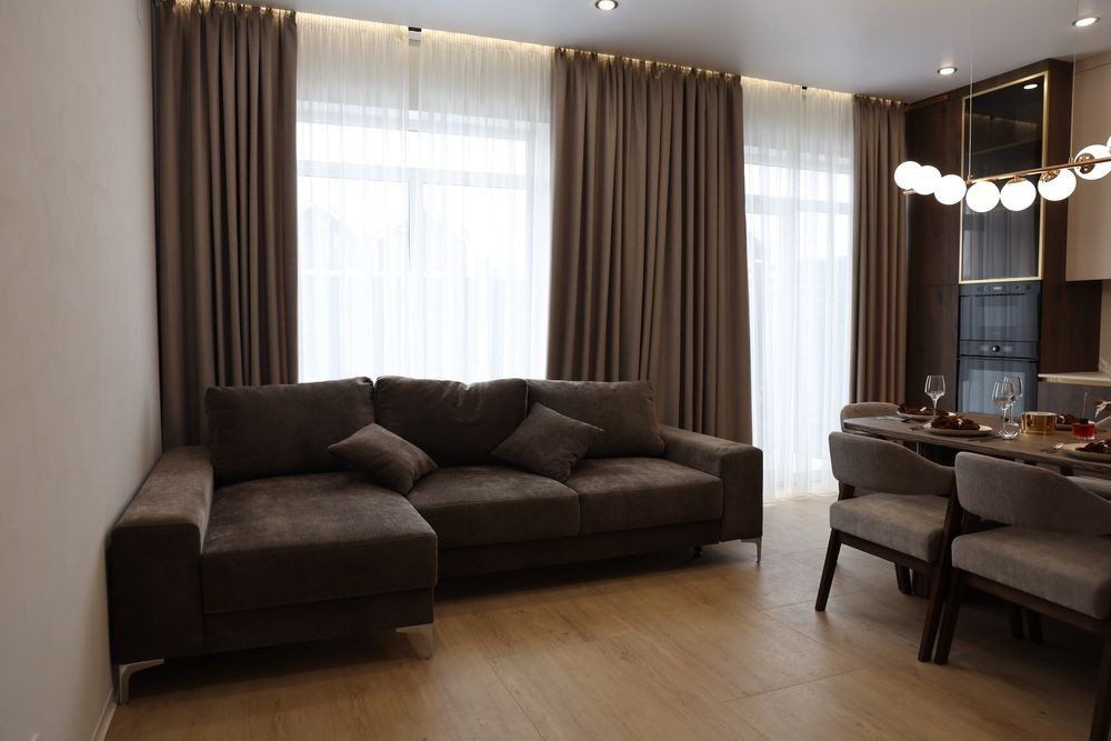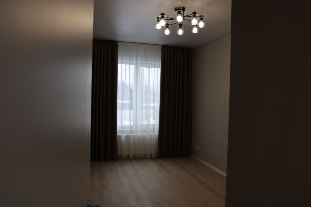 • Вбудовані карнизи, штори та тюль у всіх кімнатах