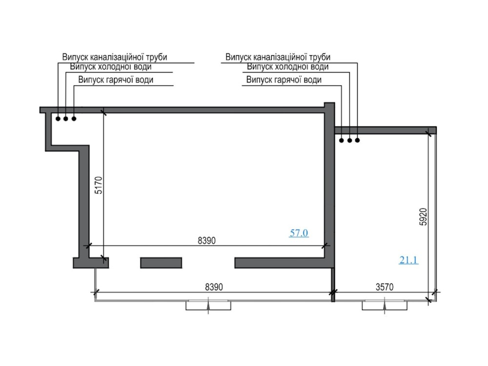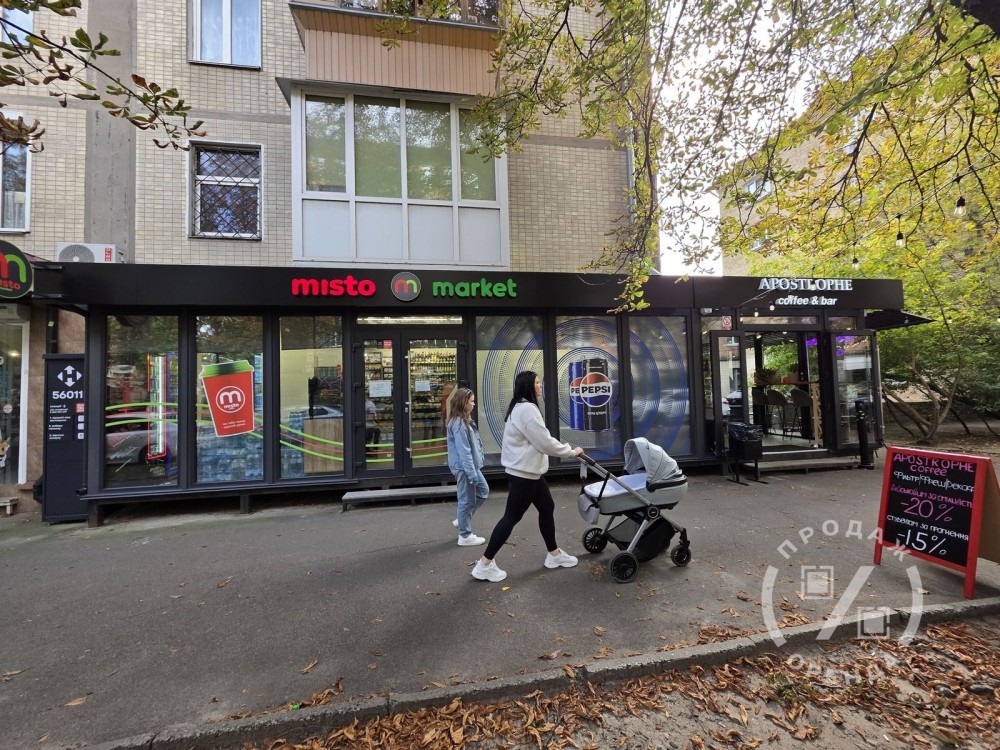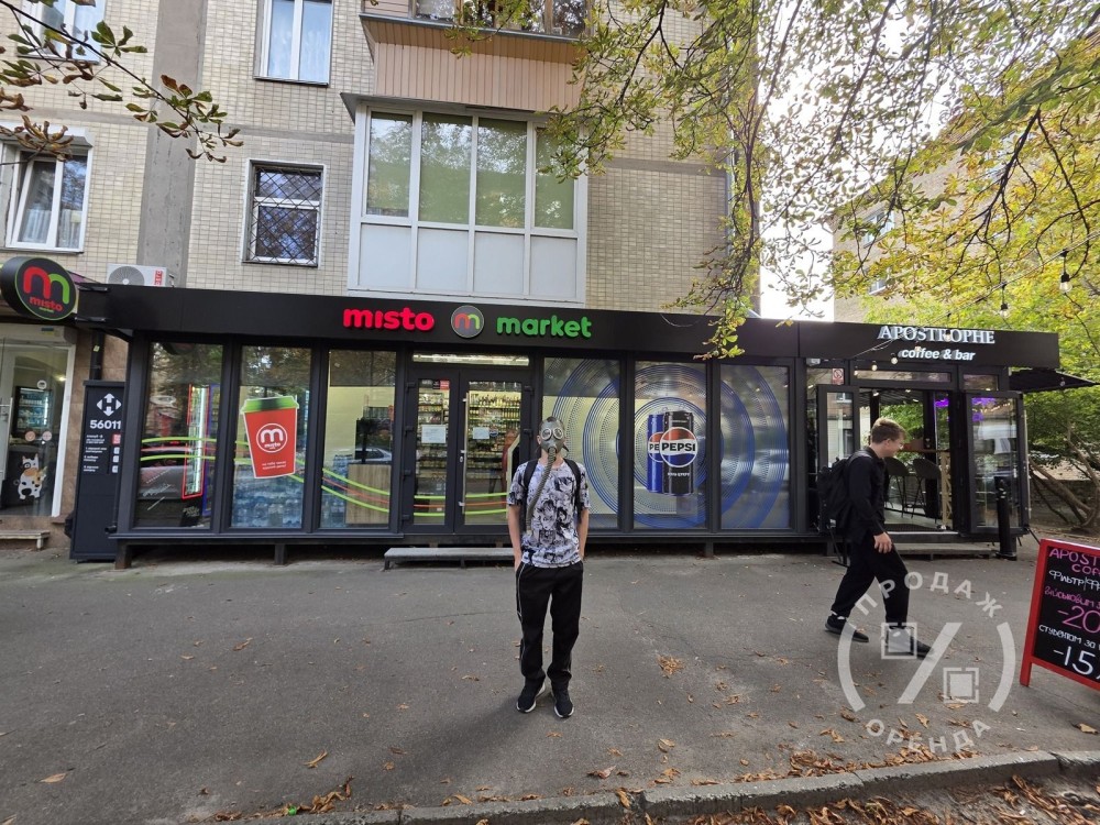 Друге приміщення площею 57 м2 займає продуктовий магазин Misto Market. Фасад із панорамними вітринами виходить прямо на тротуар, приміщення має раціональну конфігурацію та повний набір підведених комунікацій. Маркет забезпечує стабільний щоденний трафік і надійний фінансовий потік.