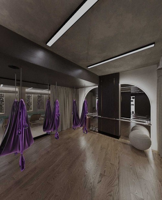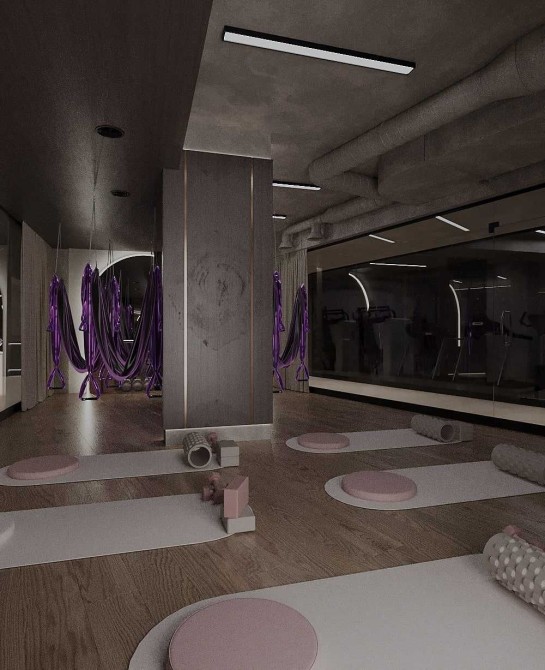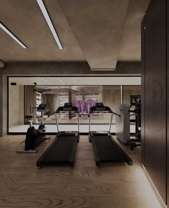 Спортивна зона: Просторий зал для йоги та сучасний тренажерний зал.