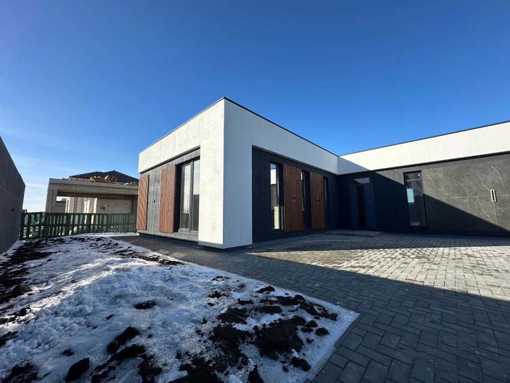 По планировке 3 спальни (можно перепланировать в 4), 2 санузла, гардеробная , котельная и большая кухня-гостиная с видом на двор. Есть небольшой подвал (погреб)