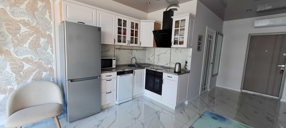 • Комфорт Кондиционер, Подогрев полов, Ванна, Мебель на кухне, Гардероб, Панорамные окна, Консъерж, Охраняемая территория, Лифт, Грузовой лифт