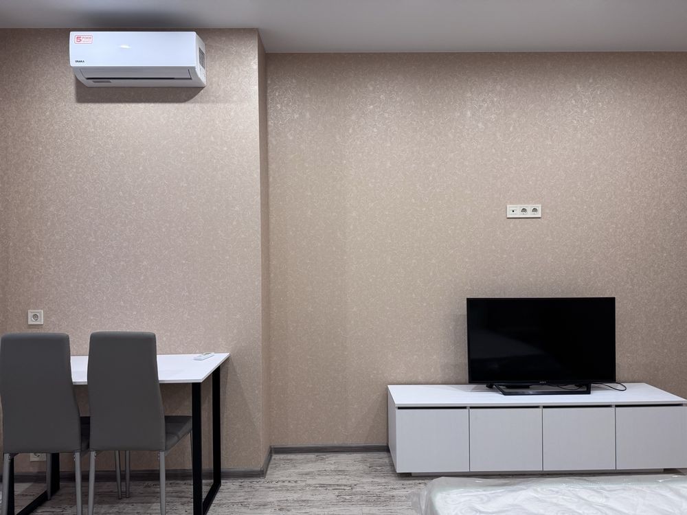 Будинок - Бетонно монолітний, в квартирі 1 кімната. Планування кімнат Студія. В квартирі є Телевізор, Шафа, Холодильник, Пральна машина, Мікрохвильовка, Посуд, Кондиціонер, Лічильники, Загальний стан квартири - Дизайнерський ремонт. Надання документів.