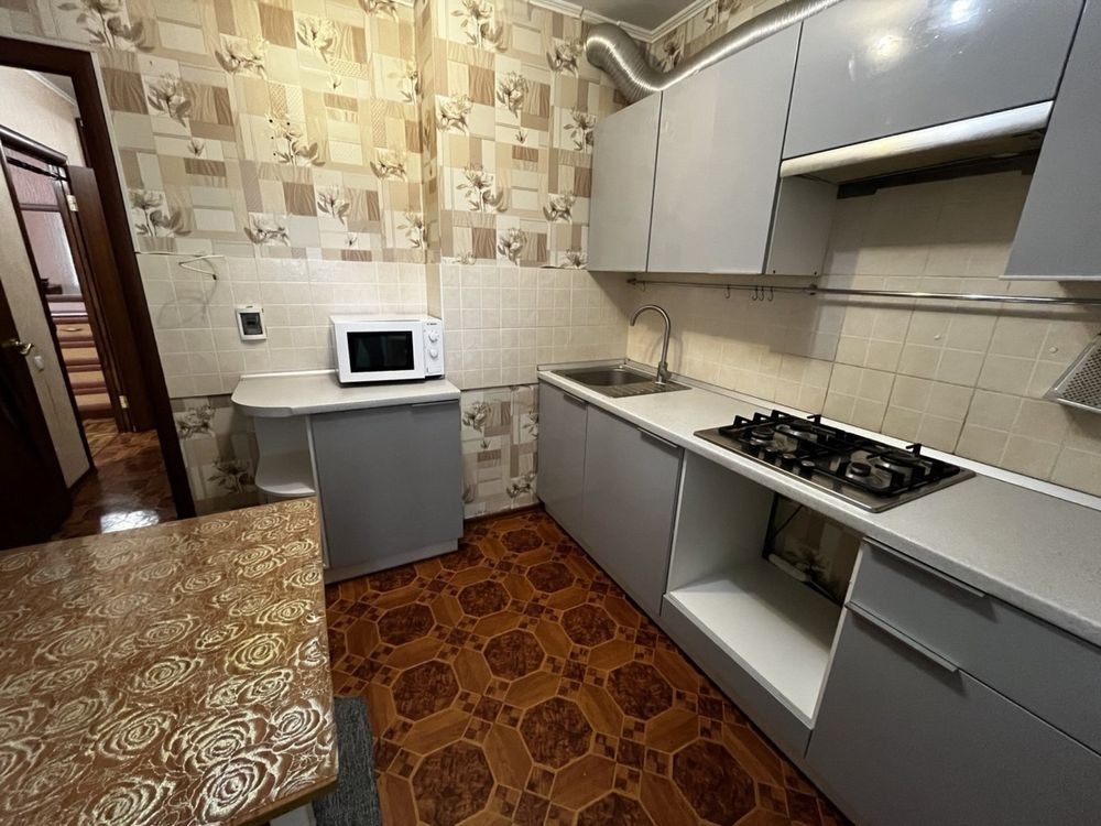Вся необходимая мебель и техника: в комнате диван раскладывается, на кухне тоже