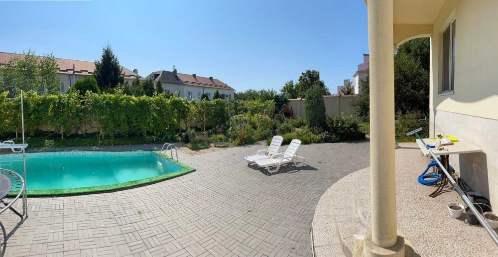На подвір'ї басейн.