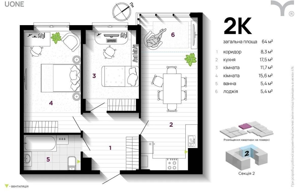 • Загальна площа 64 м2