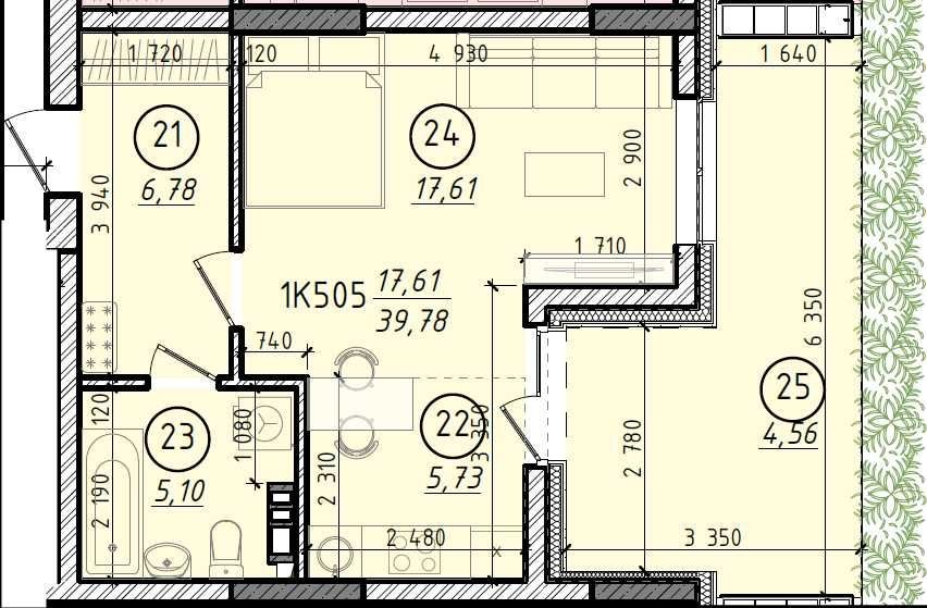 • Загальна площа 39.78 м2