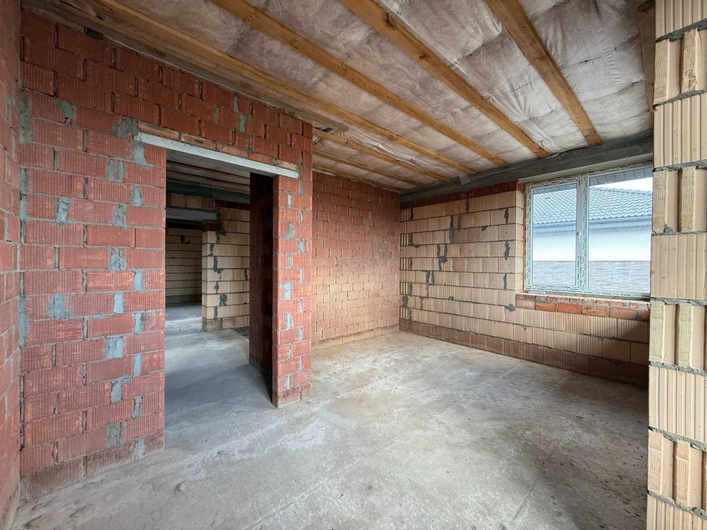 1- поверх: великий передпокій, техприміщення, ванна кімната, монолітні сходи, житлова кімната, кухня вітальня з виходом на велику терасу.