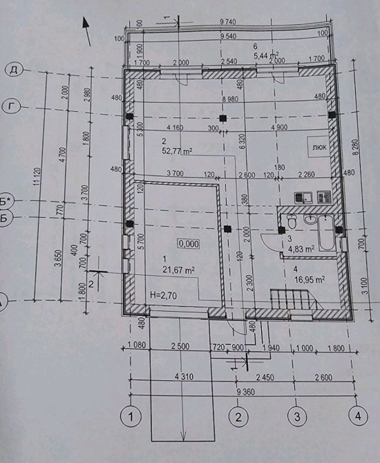 52 кв.м. з виходом на терасу,  санвузол.