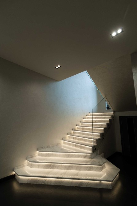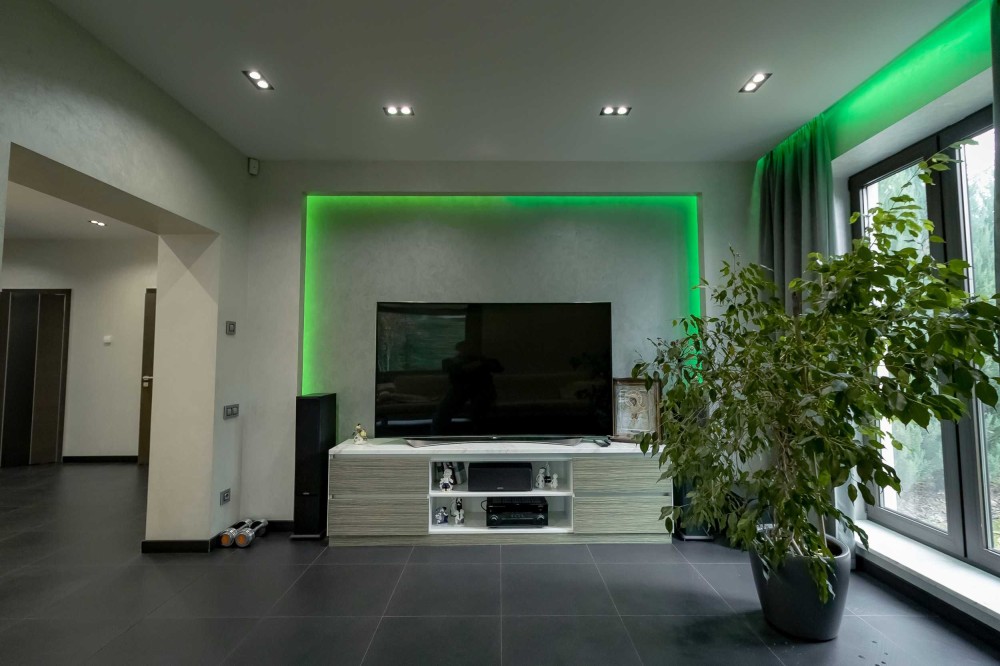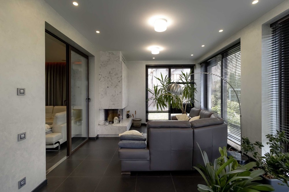 1 - скляний передпокій зі входом в гараж, гардеробна, гостьовий с/в, кімната, велика кухня-вітальня з виходом на окрему затишну зону відпочинку з каміном та великими панорамними вікнами з роздвижною системою Schüco.