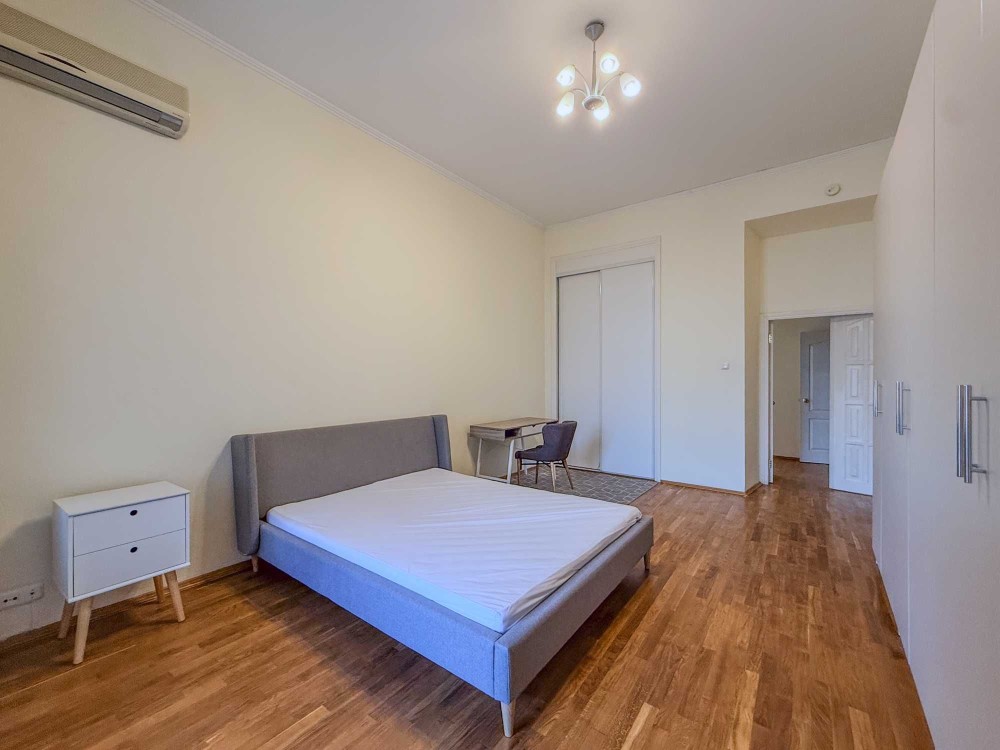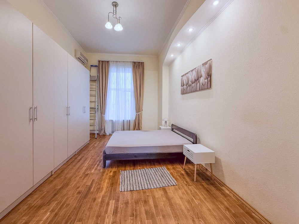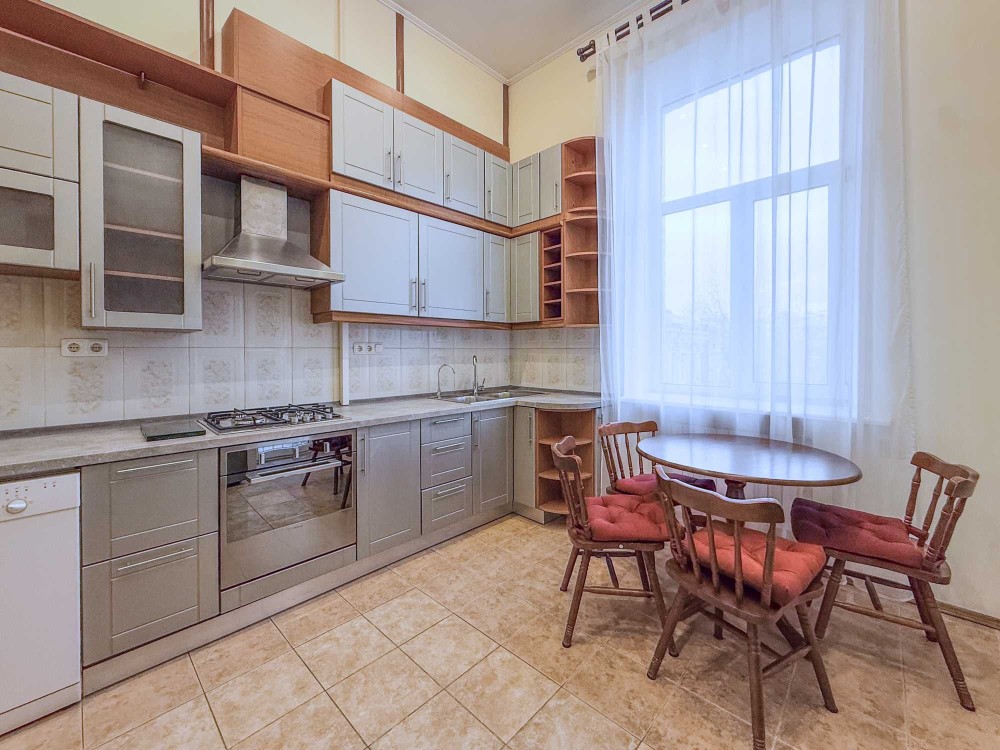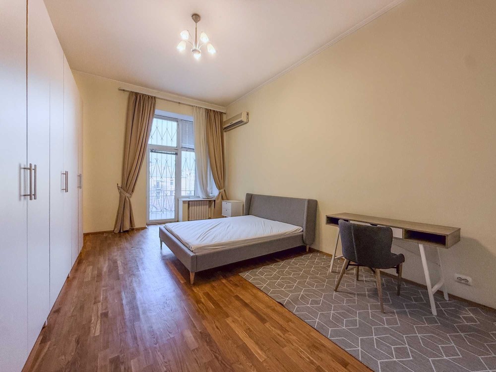 Ярославов Вал ул. 4. Старинный особняк в историческом центре Киева прямо напротив Золотых Ворот. Рядом метро, рестораны, Оперный театр, масса посольств и иностранных представительств. Квартира расположена на 3 этаже 5-этажного дома с лифтом. Чистый, светлый подъезд с мраморными ступенями, массивная деревянная дверь, закрывающаяся на кодовый замок. Общая площадь квартиры 145 кв.м. Высокие потолки – 4м. В квартире: просторная гостиная с открытым балконом и видом на Золотые Ворота, кухня, три спальни, 2 с/у и терраса с окнами во двор (выход из главной спальни). Квартира оснащена необходимой бытовой техникой, встроенной кухней, системой сигнализации, кондиционерами и т.д.