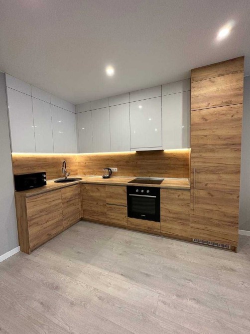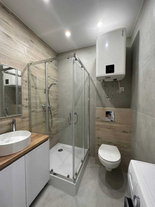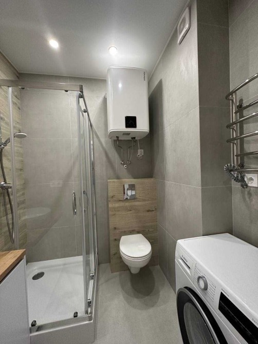 Квартира укомплектована всією необхідною технікою (варочна поверхня, духова шафа, холодильник, витяжка, посудомийна та пральна машина), телевізор.