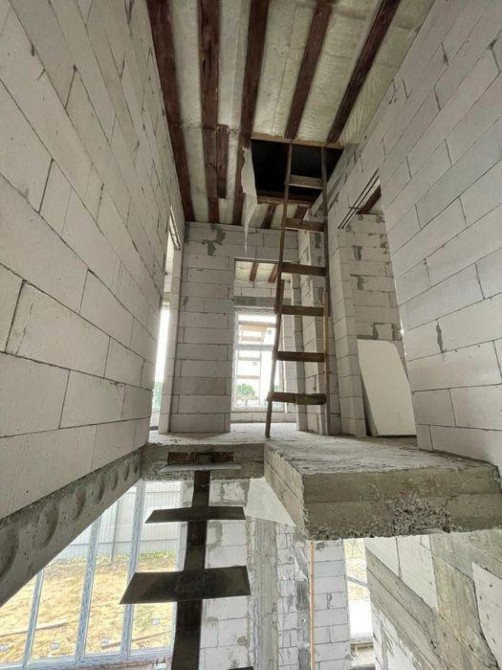 • 1-ий поверх - з газоблоку 400мм товщиною, висота стелі - 3.2 метри.