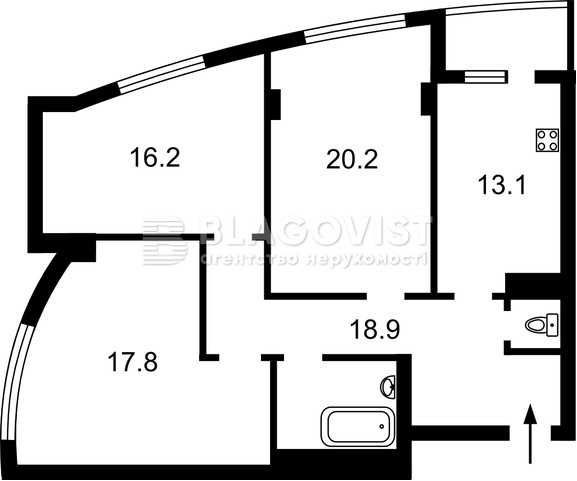 • 3р, 12-й поверх, загальна площа: 95м2\54,2 м2\13,1м2;