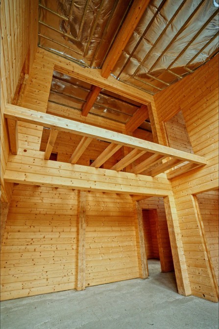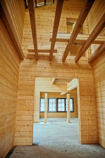 Основний будинок збудований із клеєного брусу Honka (Фінляндія) товщиною 260 мм — преміальна якість, екологічність, довговічність.