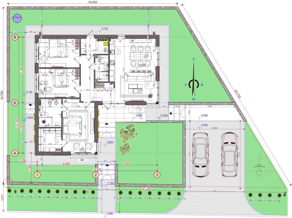 • 3 спальні, 2 санвузли, гардеробна, котельня