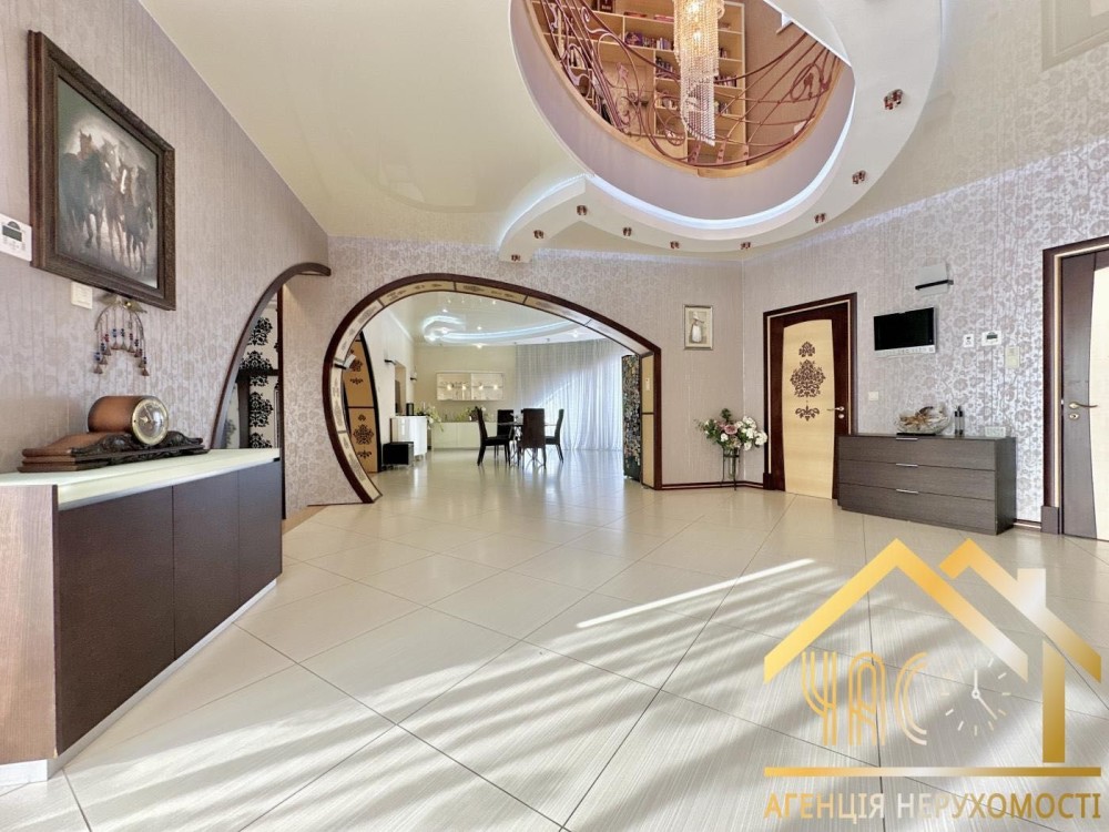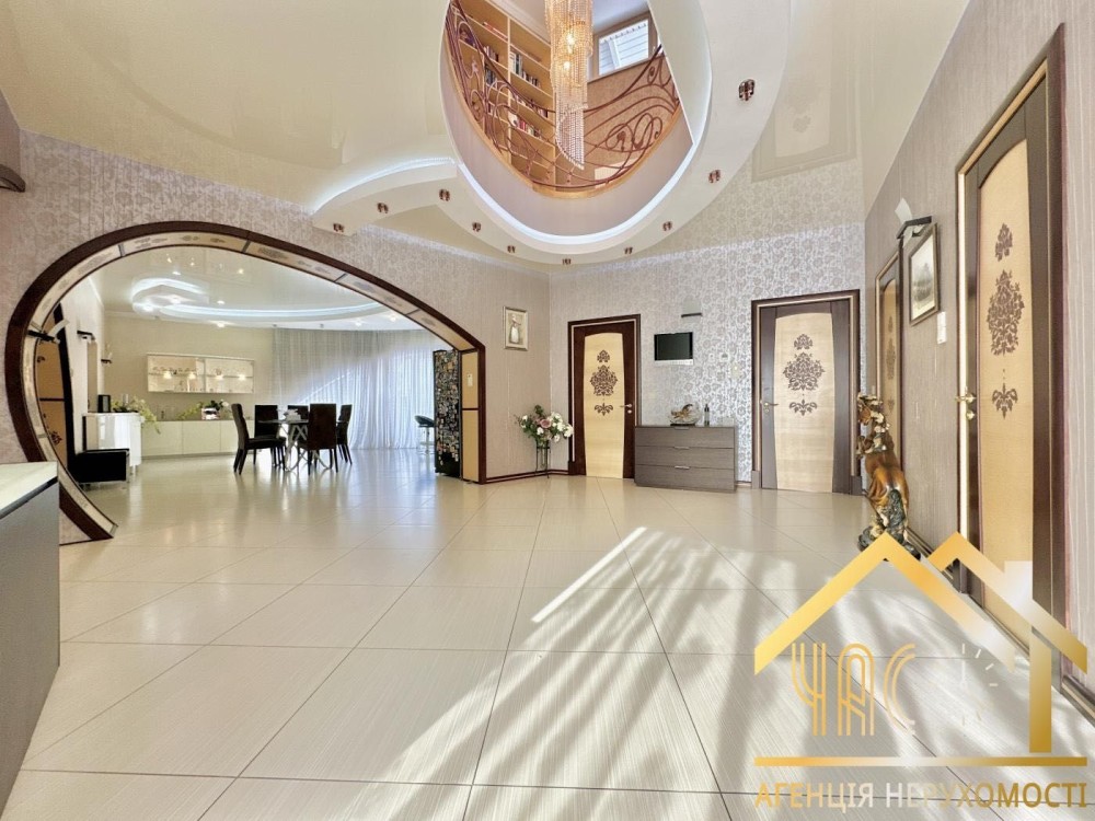 Загальна площа будинку 737,1 м², житлова 288,7 м². Повноцінний підвал 53 м² з винною кімнатою. Гараж 46,9 м² на 2 автомобілі. Окремий гостьовий будинок 80 м². Земельна ділянка 30 соток, два заїзди, під’їзд із двох вулиць.