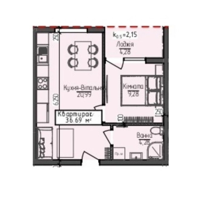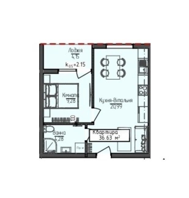 • Загальна площа 36.63 м2