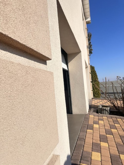 Фасад утеплений 100 мм пінопластом та оздоблений декоративною німецькою штукатуркою.