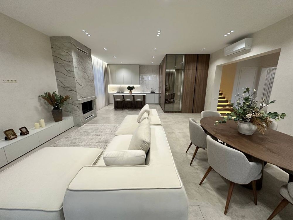 Пропонується сучасний преміальний будинок з новим дизайнерським ремонтом, меблями та побутовою технікою Franke, розташований у тихій та зеленій локації біля лісу.
