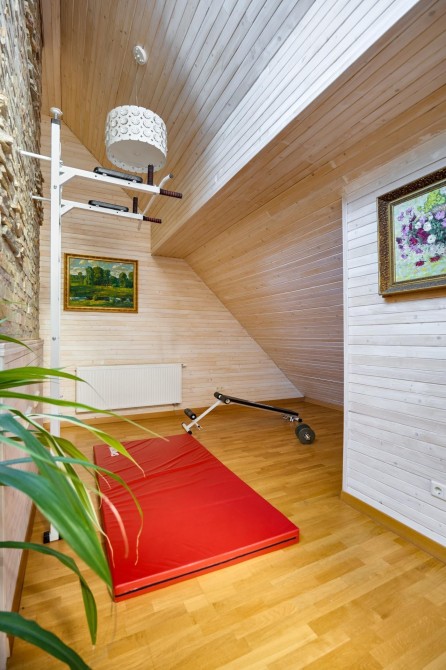 Другий поверх: дві кімнати, санвузол, душова, римська сауна.