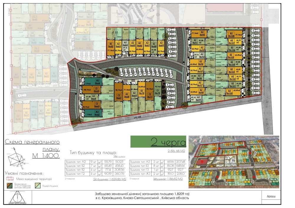 Комплекс на 108 таунхаусів із власною інфраструктурою, гарною транспортною доступністю та затишною атмосферою.