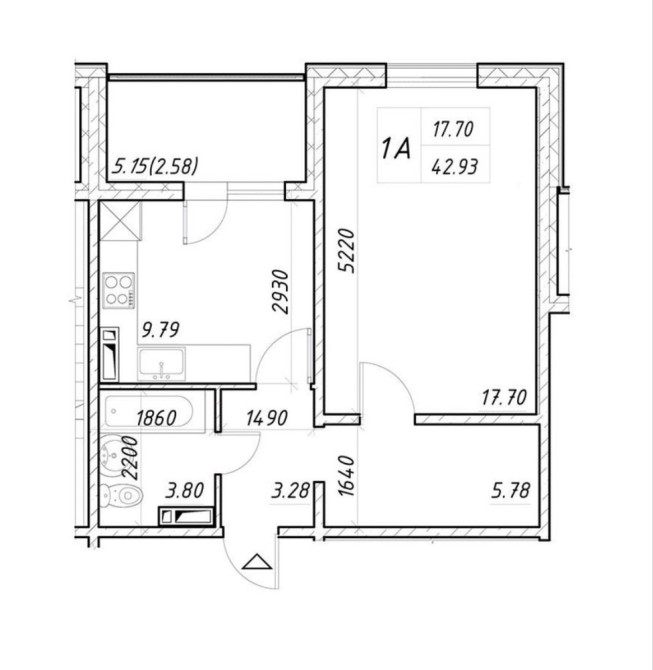 • Загальна площа 43 м2