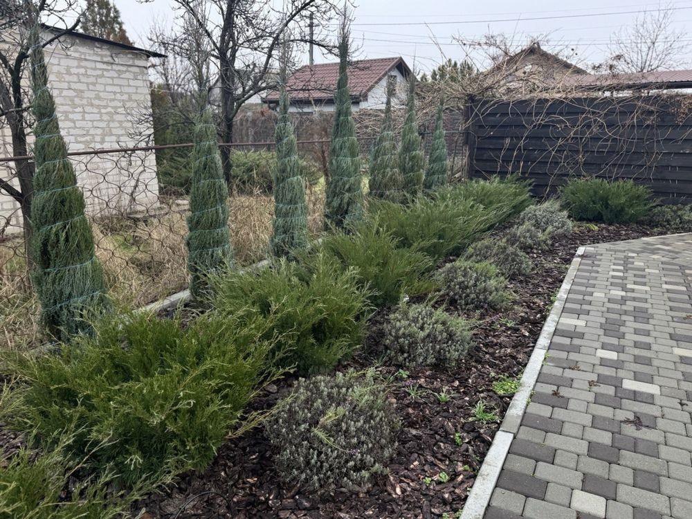 Хвойні: можевельники 3 видів, кримські сосни, туї.
