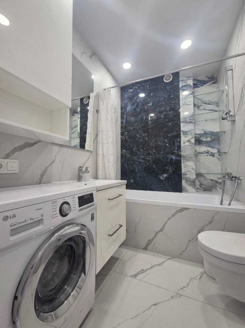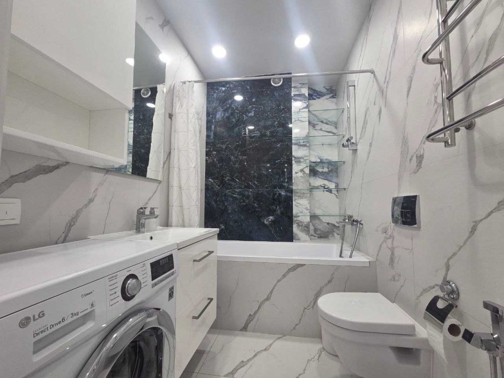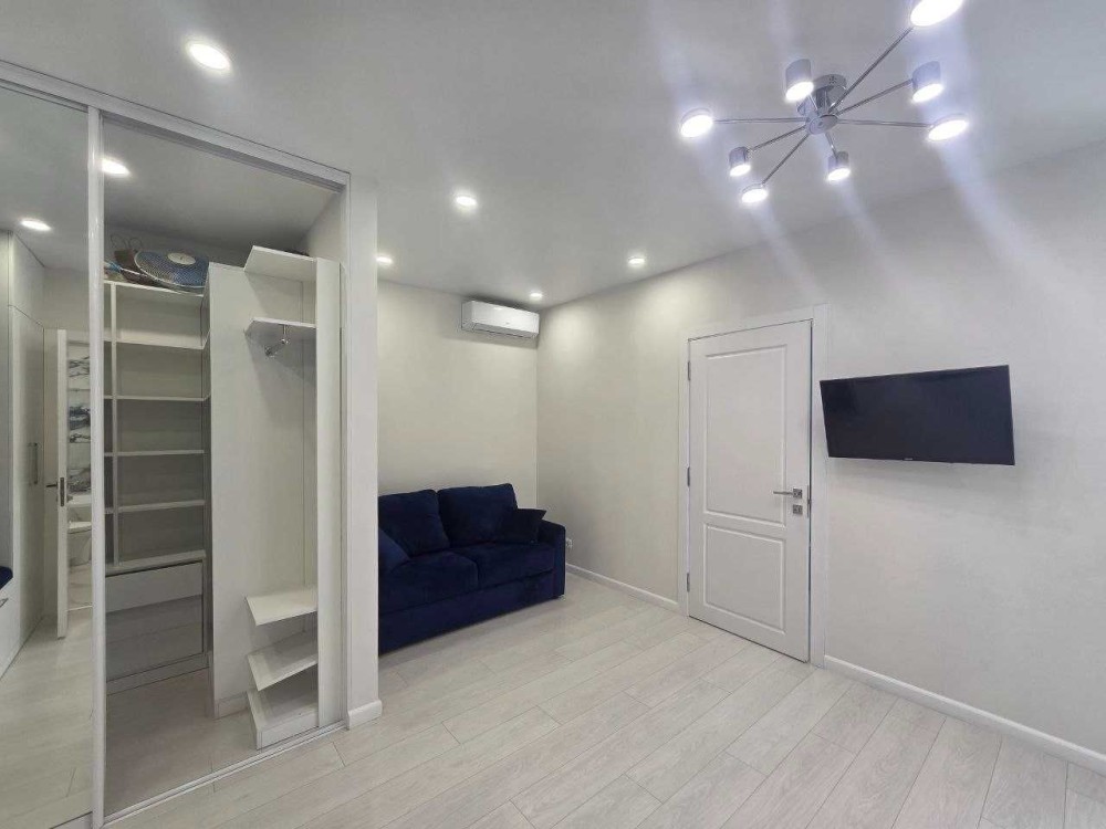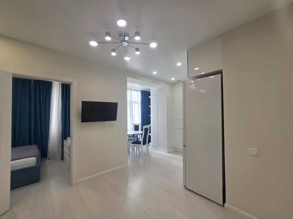 Інтер’єр виконаний у сучасному стилі в світлих, приємних тонах. Квартира повністю укомплектована всією необхідною технікою та меблями, готова до комфортного проживання.