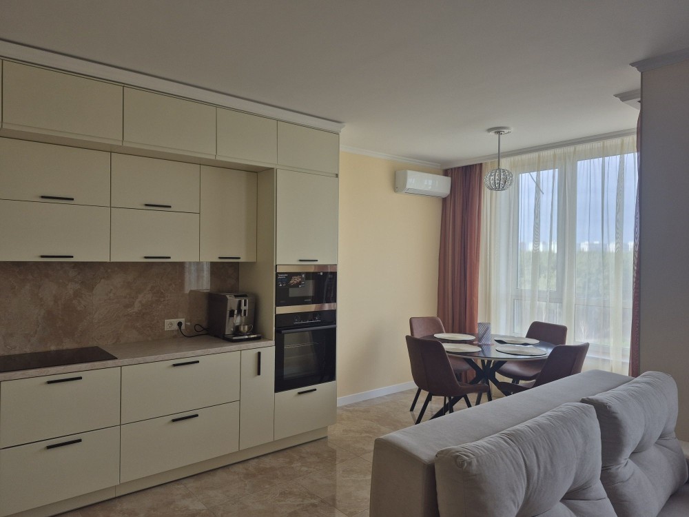 ​Планування: Дві окремі кімнати (спальні) + величезна кухня-студія площею 34м2, ідеальна для прийому гостей та сімейного дозвілля.