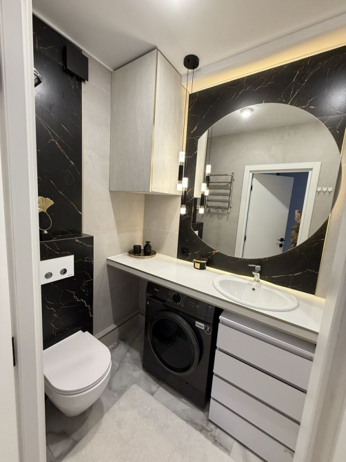 Встановлено інверторний кондиціонер, індукційну плиту, духову шафу, посудомийну машину, холодильник, Smart TV, бойлер, пральну машину, електрочайник, весь необхідний посуд.