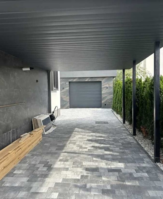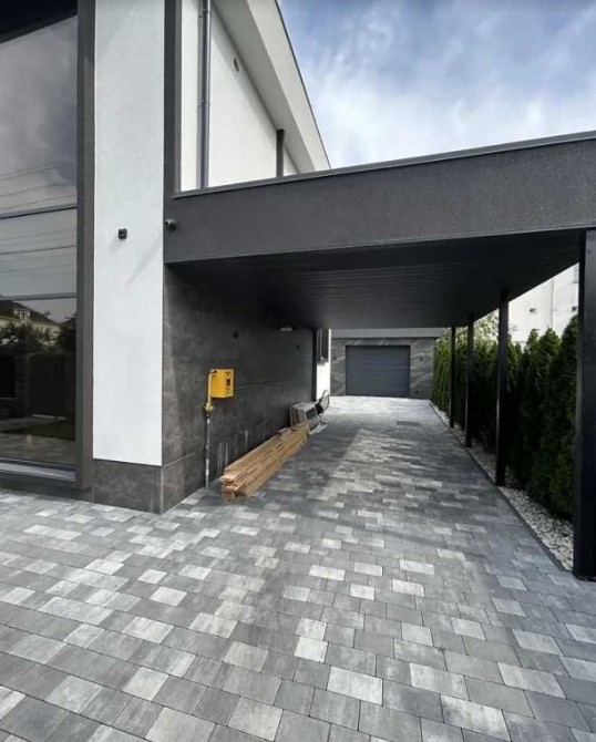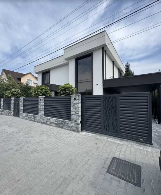 Територія будинку також облаштована за європейськими тенденціями - автоматичні ворота, велика крита парковка + гараж, в зонах відпочинку встановлена система автоматичного поливу газону. Ізюминкою даного об'єкту є стильний дизайнерський паркан з кованими елементами. Стиль і розкіш в кожній деталі.