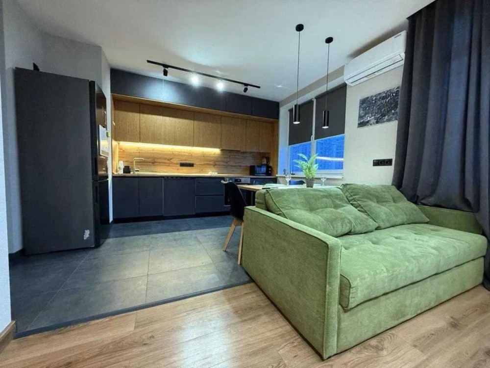 Максимально функциональный лот, не требующий дополнительных вложений и готовый к заселению в день сделки. Главный актив — рациональное зонирование: просторная кухня-студия (18 м²) для приема гостей и уютная отдельная спальня (16 м²). Ремонт выполнен в актуальных нейтральных тонах с использованием стильных комбинаций дерева и графита в санузле. Квартира расположена на оптимальном 6-м этаже, укомплектована мебелью и встроенной техникой, что делает её идеальным вариантом как для стартового жилья, так и для высокодоходного арендного бизнеса. Объект полностью соответствует требованиям государственных программ (Є-Відновлення и др.).
