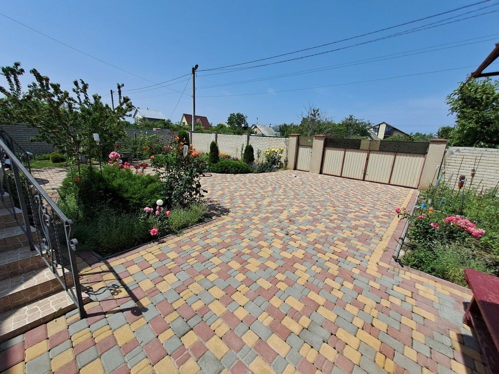 • двір викладений плиткою