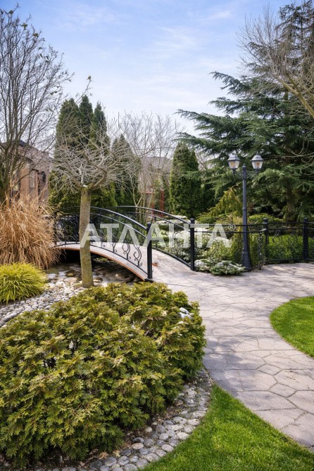 Строительство из паропроницаемого газобетона Ytong, крыша — немецкая керамическая черепица. Участок оформлен авторским ландшафтным дизайном: декоративный пруд с мостиком, фруктовые деревья, зоны для барбекю.