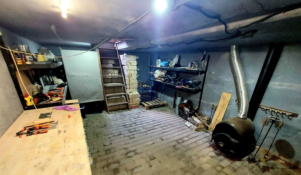 Цокольный этаж имеет брусчатый пол, принудительная вентиляция