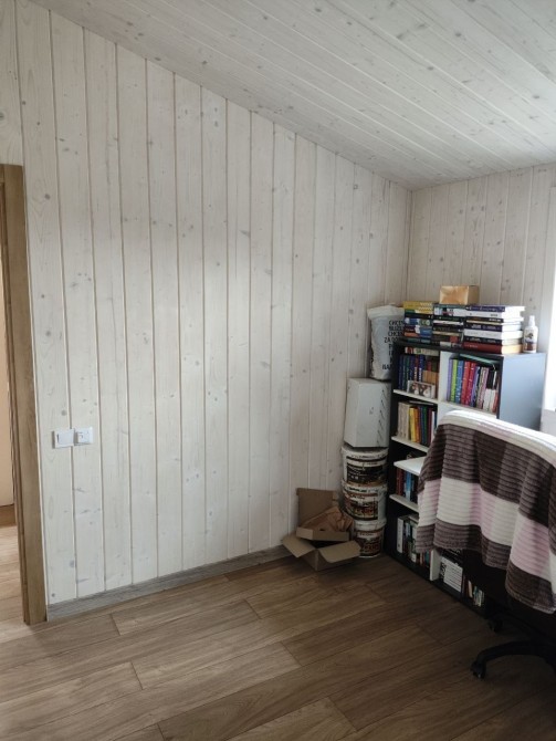 ВНУТРІШНЄ ОЗДОБЛЕННЯ Стіни та стеля: імітація бруса або вагонка, пофарбовані лазуррю.