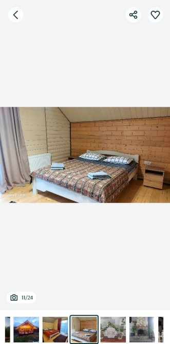 Ціна від 10000 грн. До 7 гостей -10000 грн за добу. Лазня та басейн оплачується окремо 5000 грн за добу або погодинно -1000 грн за годину.(Мінімум 4 години). Доплата за кожного наступного гостя 1000 грн. П’ятниця ,субота та неділя вартість оренди на 1000 грн вище. 332 Будинок-зруб з басейном з підігрівом та лазнею. 3 великі спальні, розрахований лише до 12 гостей, за стіл можна розмістити до 12 гостей та спальних місць 9. Приймаються тільки не гучні компанії. На території є альтанка з зоною барбекю, мангал, тенісний стіл. На першому поверсі: зал-студія, басейн з підігрівом та лазня. На другому поверсі 3 роздільні, просторі спальні. Лазня, басейн та квадроцикл оплачується окремо. Також можлива оренда без лазні та басейну. Будинок повністю обладнаний для комфортного проживання, є всі необхідні меблі та побутова техніка, є стіл на 8 персон та камін.