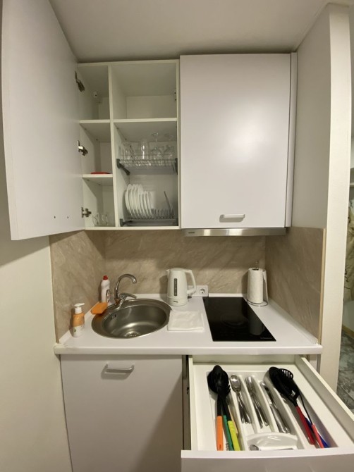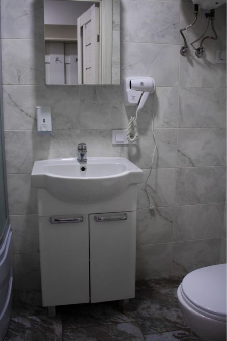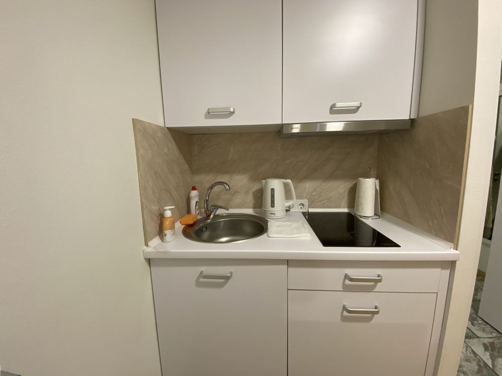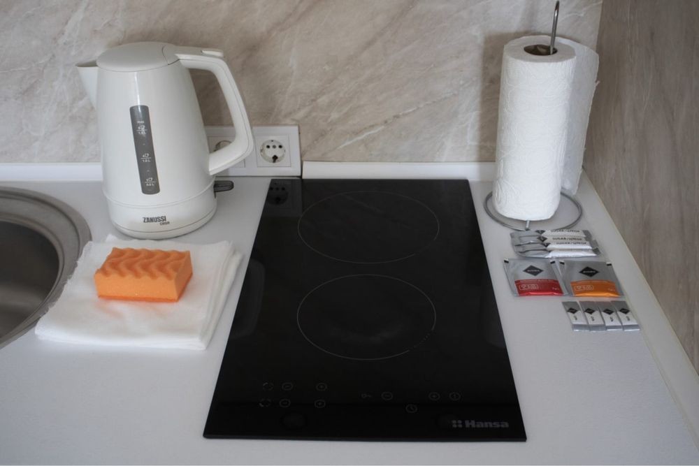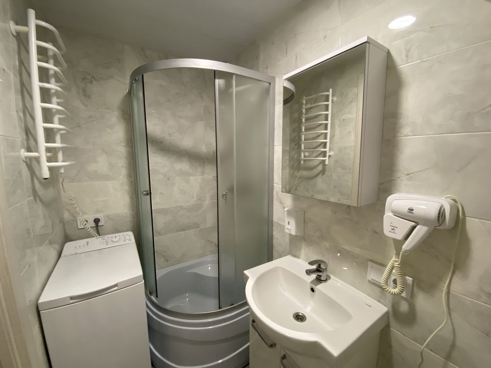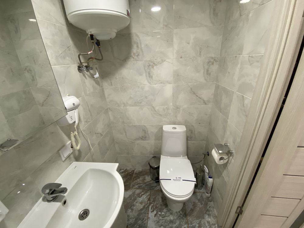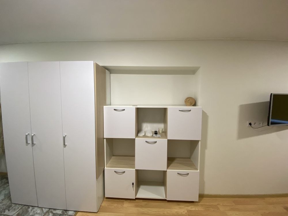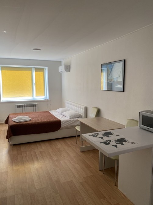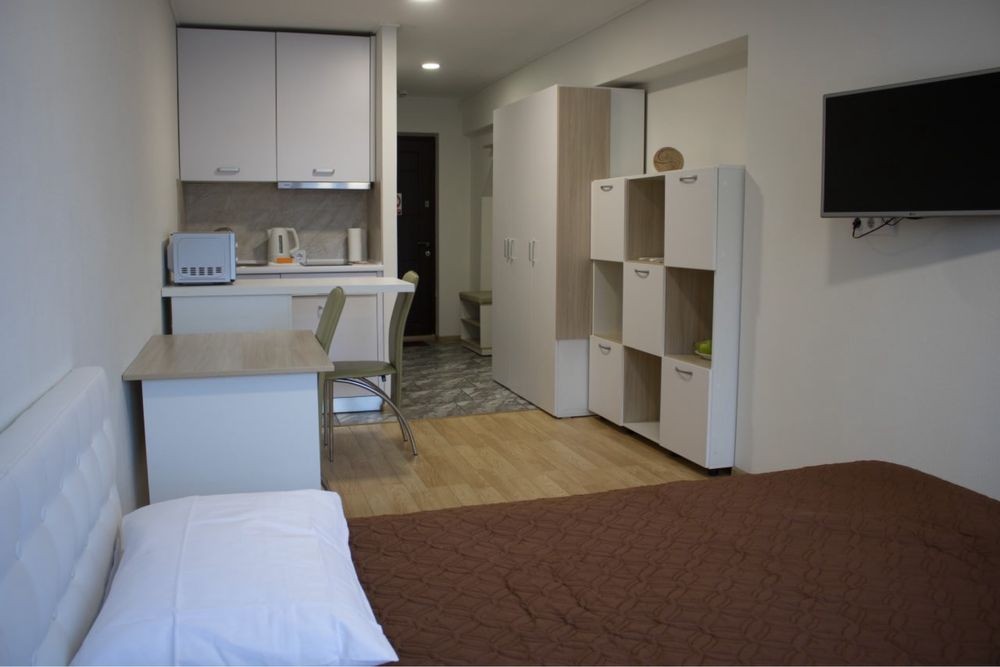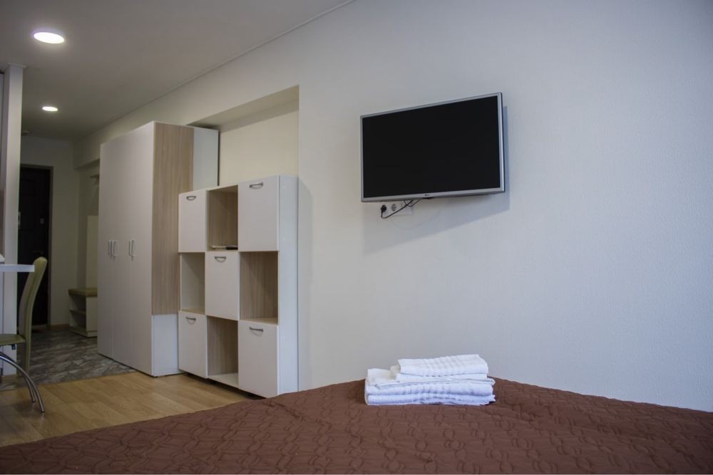 Квартира с евроремонтом , есть все необходимое : скоростной Wi-Fi, телевизор с функцией смарт ТВ, СВЧ печь, холодильник, кухонная плита, стиральная машинка (фен, утюг, Эл чайник, также в доме круглосуточная охрана, пожарная сигнализация, БОМБОУБЕЖИЩЕ, камера хранения, прачечная, услуга уборка квартиры.